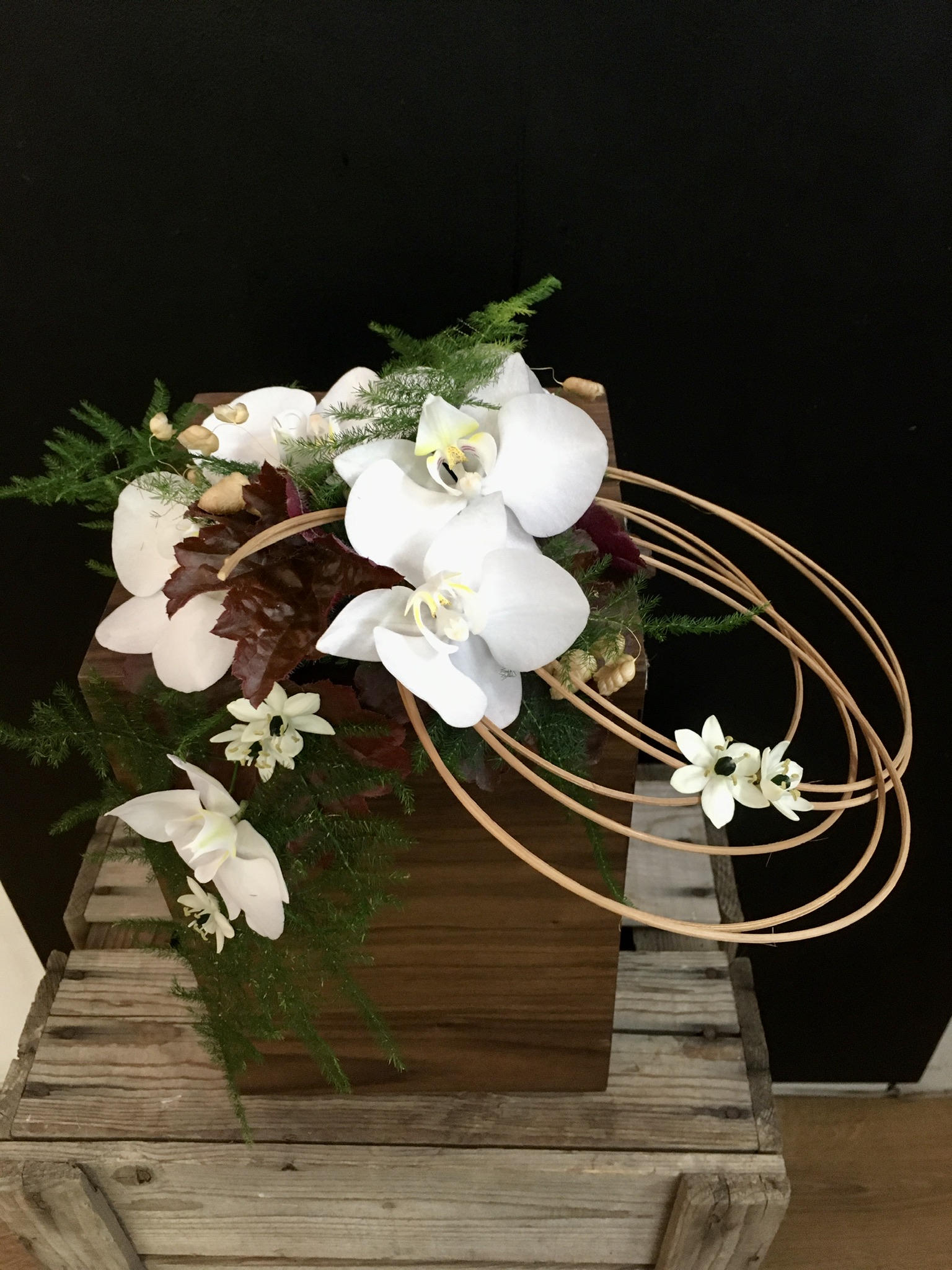 Uurnakoriste Orkidea, koristeet ja vihreät.